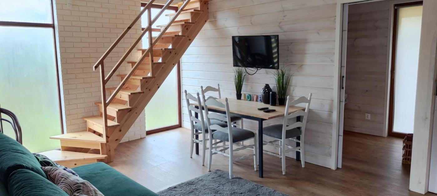 Dom z 2 sypialniami. Guests will find a refrigerator, a dishwasher, kitchenware and a microwave in the fully equipped kitchen. The holiday home also offers a barbecue. Featuring a terrace with garden views, this holiday home also provides a coffee machine and a flat-screen TV. The unit offers 4 beds. Dom wakacyjny - 6 osobowy. Powierzchnia pokoju ok.: 60 mkw.